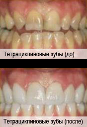 Тетрациклиновые зубы легкой и средней тяжести окрашивании зубы можно попробовать отбелить с помощью системы профессионального отбеливания Zoom 3, но увы, тетрациклиновые зубы сложнее поддаются отбеливанию и осветляются максимум на несколько тонов.