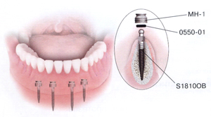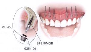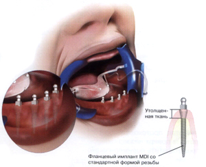 Система имплантация при использовании зубных мини имплантов состоит из имплатата, который изготавливается из титана или титанового сплава и вчетверо меньше обычного и специального крепления, которое имеет резиновое кольцо, выполняющее роль гнезда. Головка зубного мини импланта плотно охватывается резиновым кольцом и служит надежным фиксатором для съемного протеза. Установка зубных мини имплантов в стоматологической клинике Апекс-Д осуществляется с использованием местной анестезии и занимает 40-60 минут, иногда несколько дольше. Мини импланты вкручиваются на место отсутствующих корней зубов. Как правило, в одной челюсти для надежной фиксации протеза устанавливают от 4 до 6 мини имплантов. Технология установки протезов на зубных мини имплантах малоинвазивна, при этом не используются разрезы и накладывание швов, т.е. травматизация тканей минимальна.