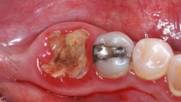 в лунке формируется кровяной тромб или сгусток. Этот сверток в идеальной ситуации заполняет собою альвеолу до уровня бывшей циркулярной связки зуба и, при этих условиях, на 3-4 день изжелто-серо-зеленая пленка, тонким слоем колонизирующих эпителиоцитов, в норме, накрывает всю поверхность. Они же, эти клетки, через 2 недели становятся розового цвета и превращаются в полноценную покровную слизистую оболочку прикрепленной десны.