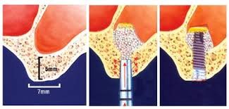 Суть этой операции заключается в формировании доступа через гребень альвеолярного отростка в месте предполагаемого установления имплантата.Через образованное отверстие в канале ложа имплантата, производится отслаивание и поднятие мембраны гайморовой пазухи (мембраны Шнайдера).После поднятия мембраны полученное пространство между дном гайморовой пазухи и мембраной заполняется остеотропным материалом.Имплантат внедряется в это, уже подготовленное, ложе после введения материала.Методика поднятия мембраны Шнайдера обеспечивает установку и стабильность имплантата, посредством увеличения толщины нижней стенки верхнечелюстной пазухи.
