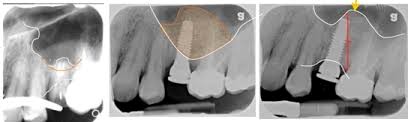 Для экранирования от роста эпителия костная рана перекрывается мембраной, тщательно выкраиваемой и подгоняемой под размер перфорационного отверстия.После ушивания мягких тканей, во избежание отторжения имплантата необходимо время для полной интеграци, ремодулирования и осификации (окостенения) остеотропного материала.Традиционно считается, что полный цикл репаративного остеогенеза (регенерация костной ткани) составляет полгода, но производители остеоиндуктивных материалов сообщают о формировании необходимой механической прочности тканей через 4 месяца.Таким образом, на этом сроке уместно проведение рентгенологического обследования с целью определения объема сформированных тканей, их рентгенологической контрастности и плотности, т.е. степени минерализации и пригодности к установке имплантатов.
